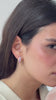 The center stones are heart-cut pink lab-grown corundums.